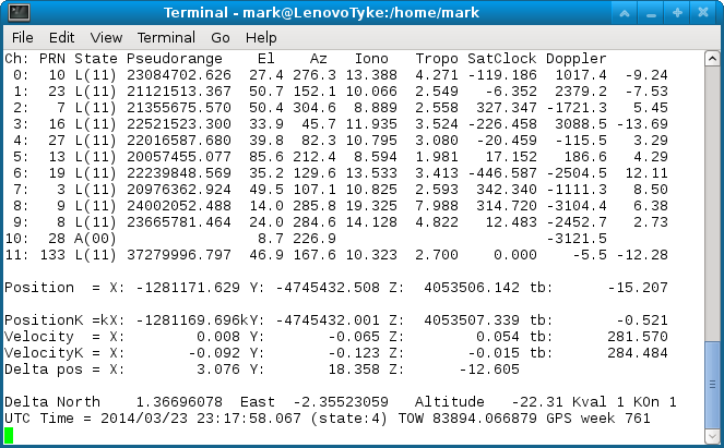 This is based on the ADR smoothed pseudorange measurements and accumulated doppler range and the positions of the satellites when they transmitted their signals.